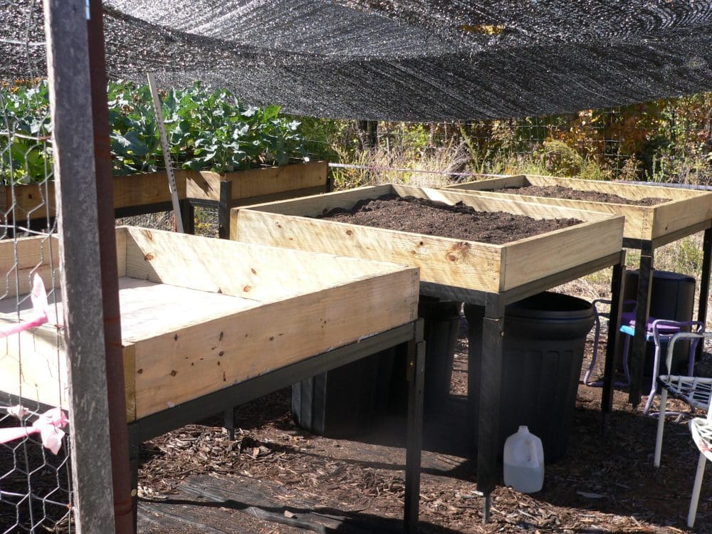 Later today we’ll remove the fabric shade from the top of the garden and spread cedar chips under the new planters.
