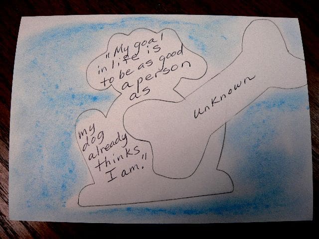 The dog quote says, “My goal in life is to be as good a person as my dog already thinks I am..” Source of the quote is unknown. There are 5 cards in this series available.