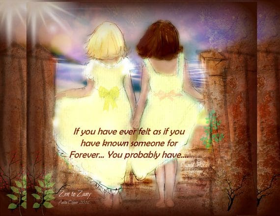 I have two friends in Tulsa. They know who they are. We may not talk every day, but when we DO get together again, we don’t even really need to catch up. We’re still on the same page. We talk as if we haven’t been apart. We still share and love. Our hearts reach out whether we can hug each other’s neck or have to rely on Facebook, blogs, emails, cards, phones, or email. The closeness and caring are forever.