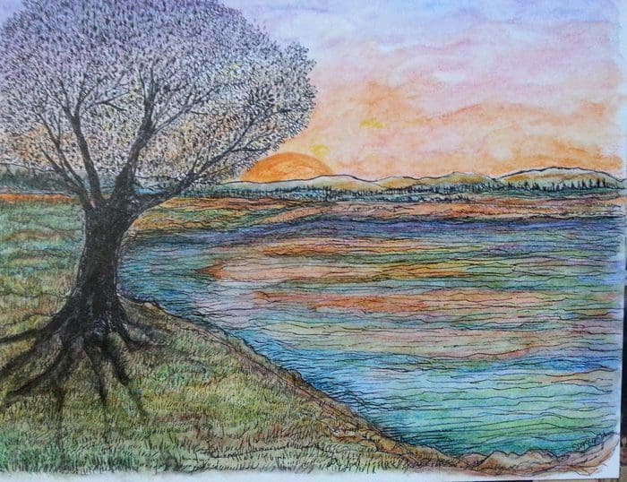 “Lake Sunset” Multi-Media Painting by Sherry Dell’aria-McGrath
