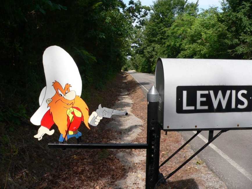 Tagged as Lewis Art, Lewis Mailbox decorations, metal art, Yosemite Sam mailbox decoration
