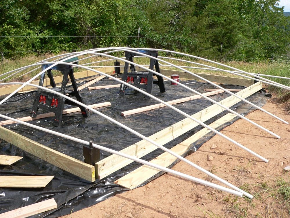 The film people warned us that if we just used the film and the pvc pipe, the fumes from the pvc in the sun would cause the film to deteriorate. My husband scoffed, but I took them seriously. They said that if we painted the pvc pipe with latex paint, it would solve the problem.