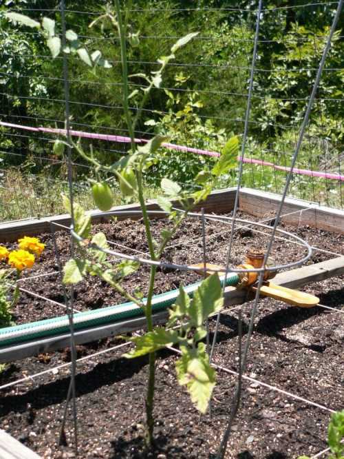 Here’s a second plant where you can see the tiny green tomatoes growing.
