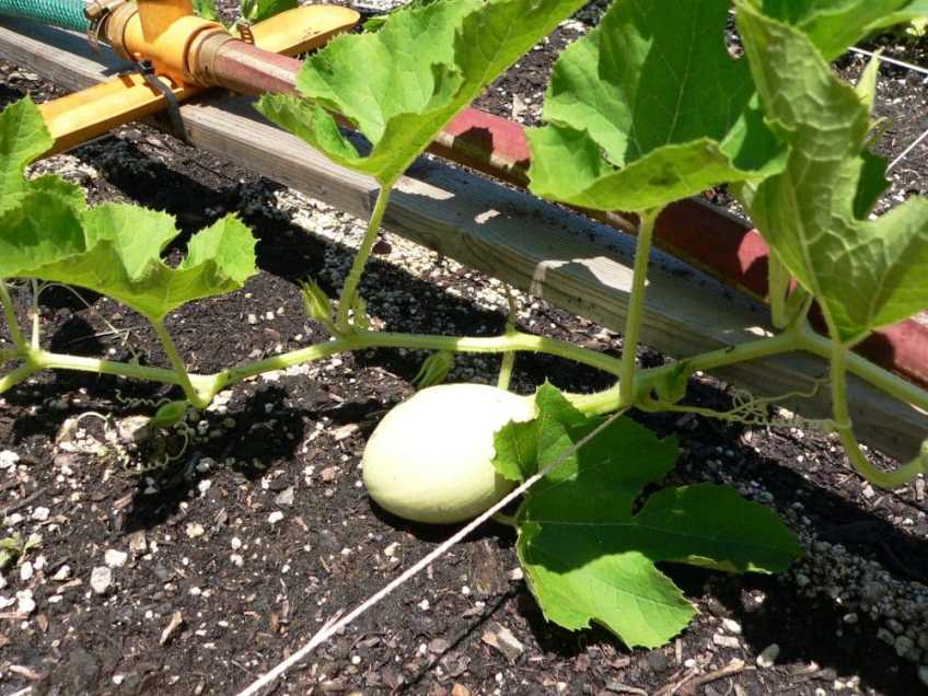 I feel like a kid at Christmas. This is a spaghetti squash grown from a seed I removed from one I had bought at the store and cooked. Isn’t it cute! :0)