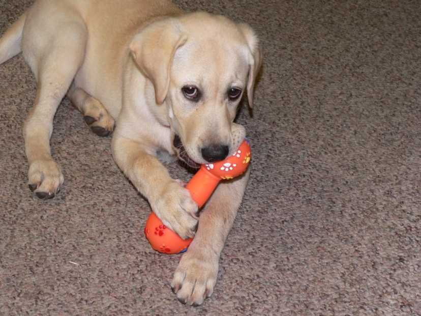 For example, I found a squeaker with a new voice in this bright orange bone this morning! I love it!!! I walk around with it my mouth making it squeak continuously. I can drive my older sister, Molly, nuts with it. If I could smile with it in my mouth, I would. :0)