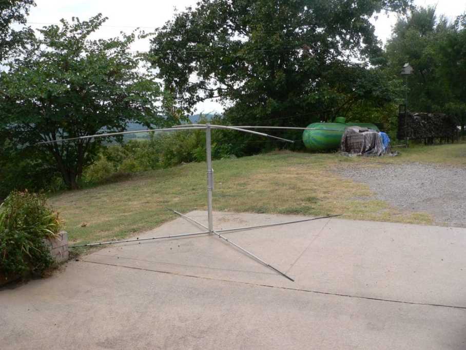 So we laboriously unbolted the antenna from the tower, carefully brought it down, and carried it to the driveway pad where my husband can work on it. Apparently, the trick is the length of the wires in the antenna. We need to shorten the wires so that we have an antenna that will resonate in the 10 meter band. My husband will need to measure carefully, drill holes into the arms of the antenna where the shorter wires need to go and then install them.