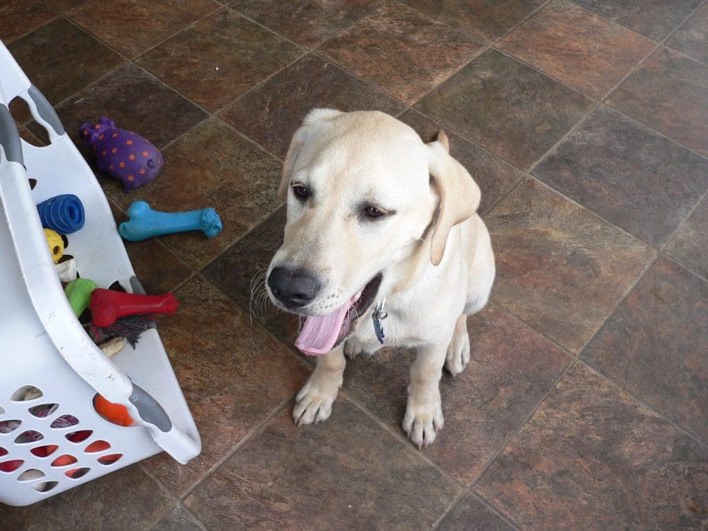 While we were there, we weighed her. She now weighs 41.6 pounds. We got two cases of the special cans of dog food, a 6 pack of Sentinel, since she’ll be in the 50 – 100 lb zone the rest of her life. I just fed her, using a can of the special food, plus the two kinds of probiotic and the crushed up antibiotic. She ate it all quickly with relish.