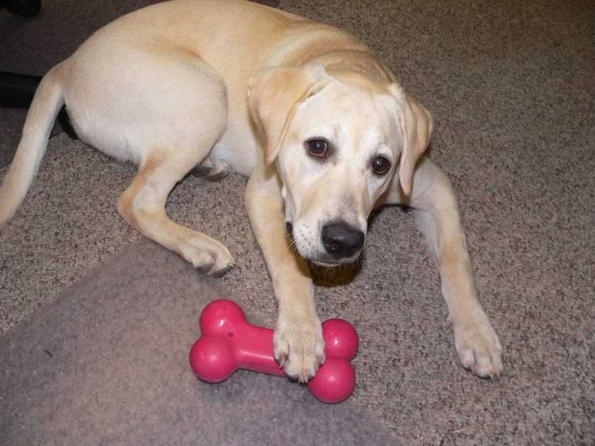 The is Amber with one of the two KONG bones I got for her recently. She is 5 months old today, 52-1/2 pounds, and is at the vet’s getting spayed this morning. It’s very quiet in the house. It’s almost eerie…