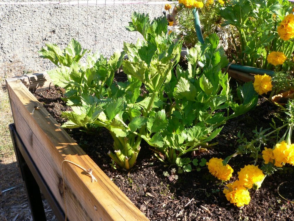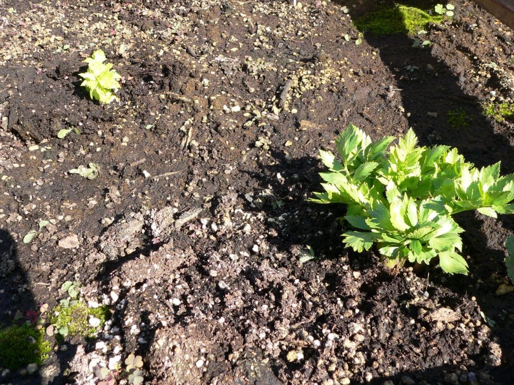 Celery. One neat thing I learned this year is that you can continue cutting stalks off, even to the point of getting pretty ruthless, leaving very little, and the stalks will start growing again!