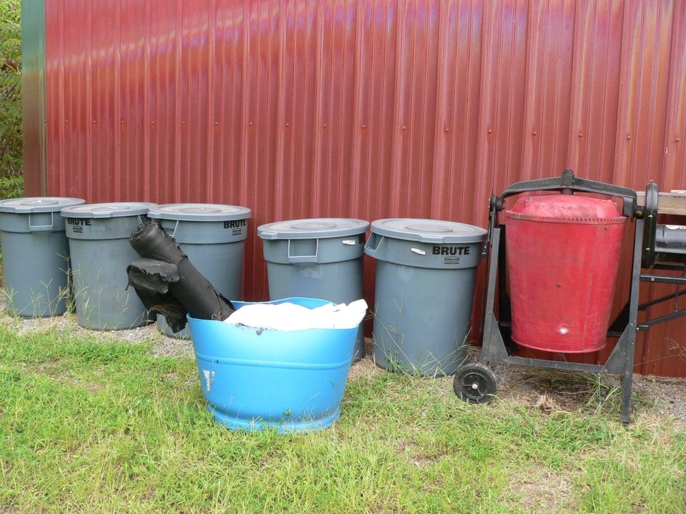 Here you see the mixer in place beside the bins holding the components of Mel’s Mix.