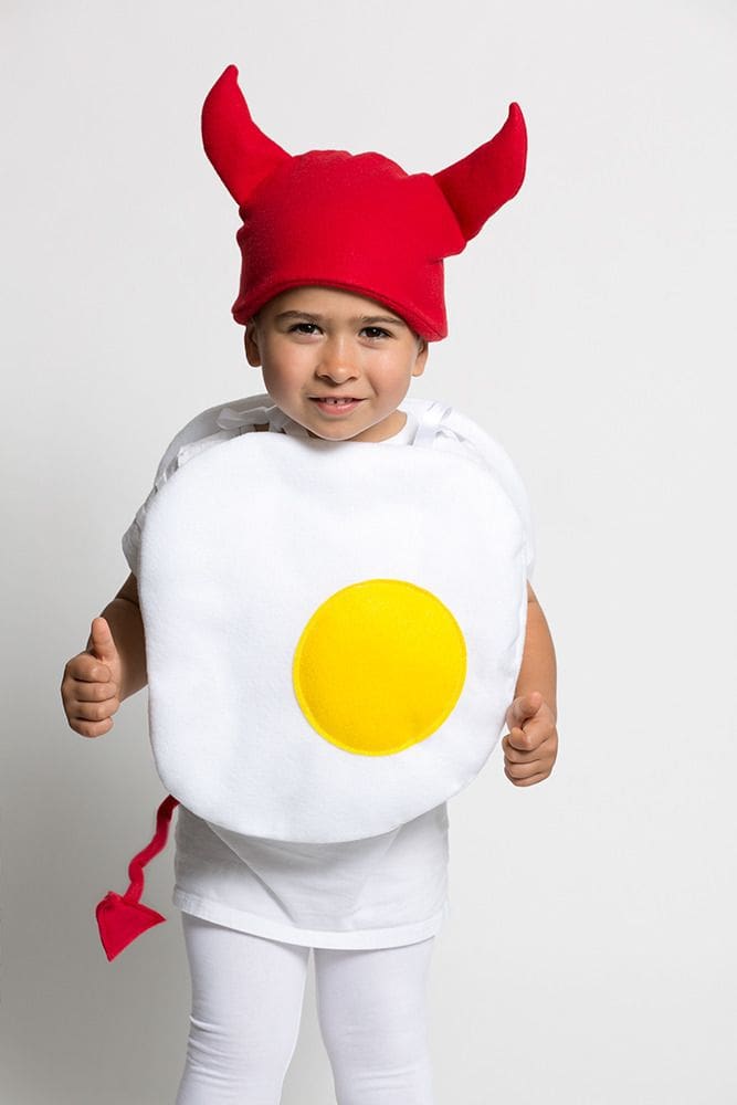 I love the punniness of this costume.  I’m sure he’s enjoying being a devil, more than appreciating being dressed as a deviled egg…