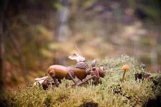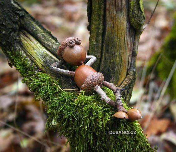 I happened upon a wonderful display of creativity, humor and talent applied by Dubanci.CZ and the folks at Natural Living and Parenting and wanted to share them with you. I loved sticking a toothpick in acorns, painting on faces and pretending they were people, but it never occurred to me to build a whole scene around them, finish making them into people, and more. I love the way creative people think. They bring up my spirits and make me smile. I hope you love them, too.