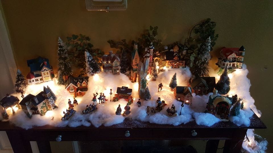 My good friend, Jackie Lyons, created a “Snow Village” and posted it on Facebook today. I wrote and asked her if I could share it with you. Happily, she said, “Sure!” Best of all, it gave us a chance to visit and catch up a bit. She’s a beautiful lady I never would have met if it hadn’t been for the Internet and my former website, Creative Artworks.