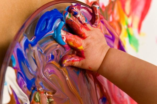 I absolutely LOVED fingerpainting as a child in school. I would have done it at home all the time, but my mom didn’t want to worry about a possible mess. I still love the FEEL of finger paints – the freedom you have to play and play – squooshing the paint between your fingers, swirling it all around, watching the colors mix, creating something, then wiping it away with a swoosh….
