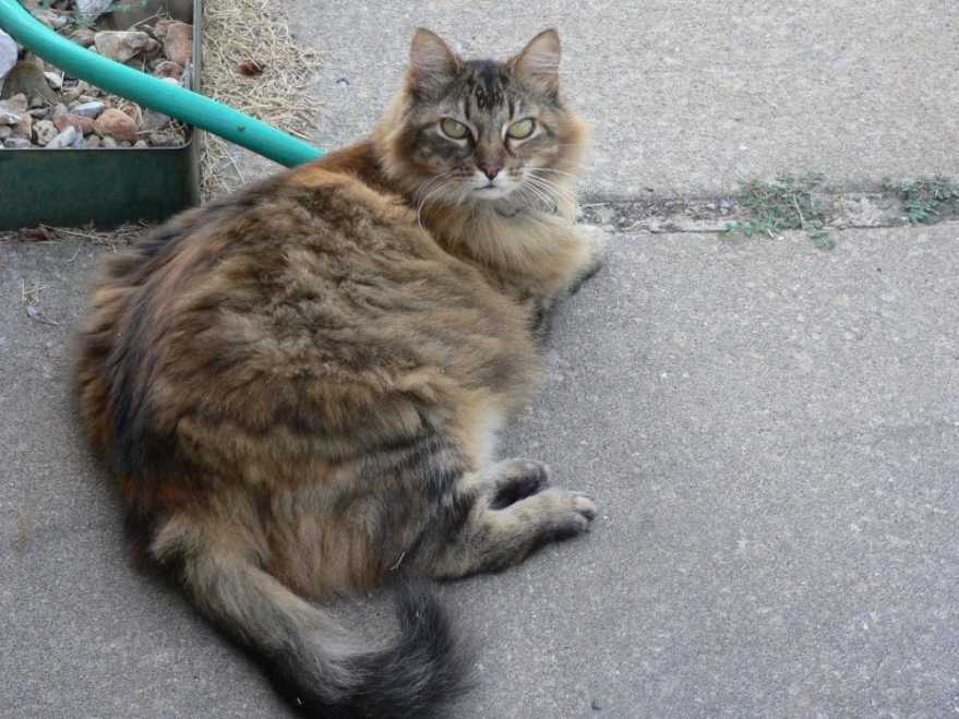 Abby was described as a “Lap Kitty” in the newspaper when she was put up for adoption. A couple found her meowing in a tree and decided to make her a part of their family. Their two Siamese cats disagreed – violently. We brought her home after having to stuff her into our carrier. It took at least a day with me sitting in the back bathroom with her before she warmed up. We took her to the vet to get shots, be checked over, and spayed. We discovered she was pregnant. We had to make the decision to abort the kitties, since we’ve been awash in kittens before and had no interest in being so again. Abby is, indeed a lap kitty, moving from one of us to the other as wonderful places to sit whenever we sit still long enough.