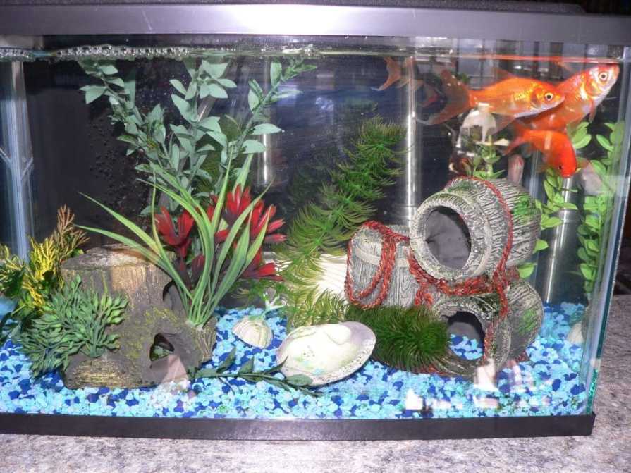 I changed from a fish bowl to a larger fish bowl, and then finally to a 5 gallon aquarium. I bought 4 gold fish. One is a dark orange, two are bright orange, and one is basically white with one orange spot. (Guess what HIS name is…) The others don’t have names. They don’t say a lot, but they do respond when you put your finger up to the tank.