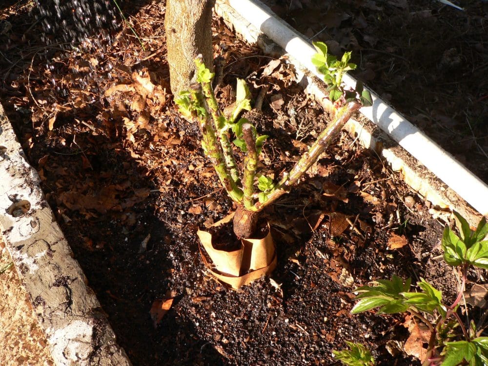 Unless I was needed to help get the forsythia out, I was digging holes and planting the other two Rio Sambas. It was a straight forward job, but I had to dig all the way down to the concrete floor to get the hole deep enough for the gorgeous plant’s roots. This one is beside the top of the driveway, beside the garage.