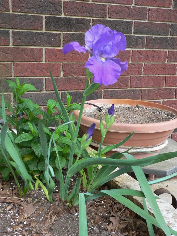 Last fall I cleaned out the planter where the ‘new’ iris were, the ones from Nanna’s Iris Garden in Charleston, AR. I transplanted iris all over the yard, and still have some that need to be planted. This is one of our new ones and I think it’s really nice. I cut the top bloom and brought it into the house for us to enjoy, leaving the rest to bloom outside.