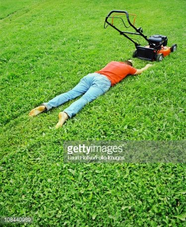 I started mowing the lawn yesterday, in a rush because we were going to have thunderstorms in the afternoon. My husband came out and took over when I had finished about half of the yard. I drank some water and then went out to run the leaf blower to clean up the front porch, sidewalks front and back and the garage pad of all the grass and dirt.