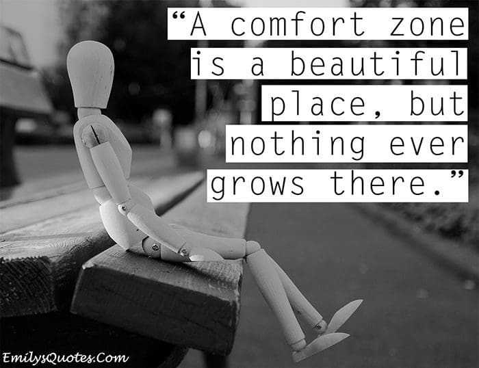 I tend to live in my comfort zone. I feel sure of myself and I like feeling that I’m in ‘control,’ even though I ‘realize’ that is delusion.