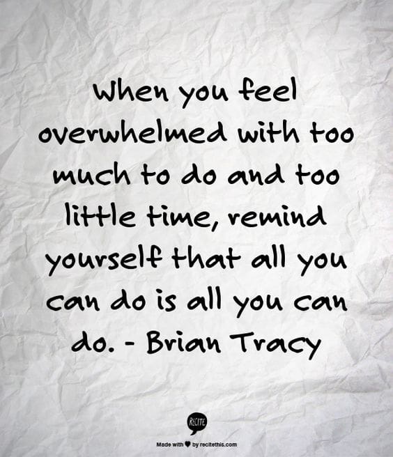 This reminder by Brian Tracy is going on the side of my file cabinet close to my computer. I’m going to try choosing something I feel is the most important for the day and let that be IT as far as things I ‘should’ do. If I accomplish that one thing, I’ll treat myself to some FUN or RELAXING time. If there is time or energy left after that, it’s gravy.