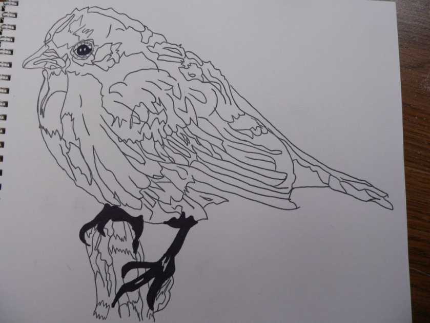 Since today is the first day of August, I’ve been dashing around doing lots of ‘stuff,’ like cleaning out the aquarium, washing and re-filling hummingbird feeders, using Rid-x, giving our animals their monthly meds, etc. I did manage to get the bird tracing transferred to my sketch book.