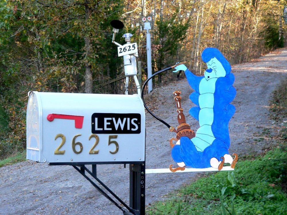 We took down Godzilla and put up the Hookah Smoking Caterpillar from Alice in Wonderland on the way to town today.