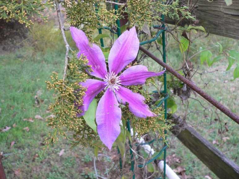 I made my husband come outside to see his clematis. He thought they were finished for the year several weeks ago. He was really happy to see this!