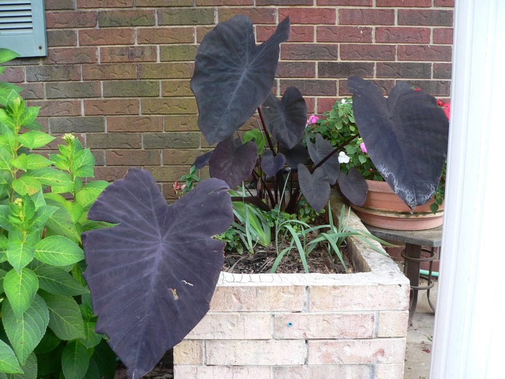 My friend, Kay, gave me this black elephant ear plant for my birthday this year. I just love it, and it seems to like it beside the front door. It’s also a bit protected from the wind we get up here on top of our ridge line.