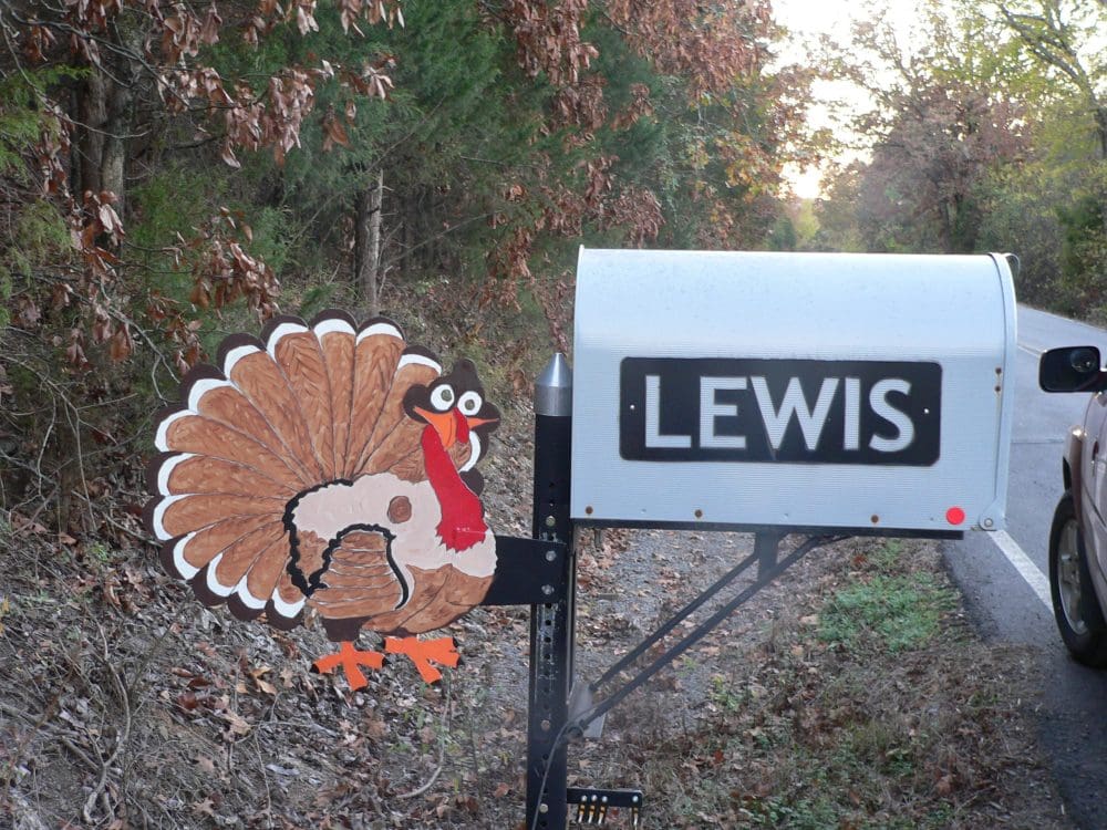 We got the turkey put up on the mailbox, but I forgot to take my camera. Since we made this decoration, I added Googly Eyes, so the expression on the turkey is a bit different.