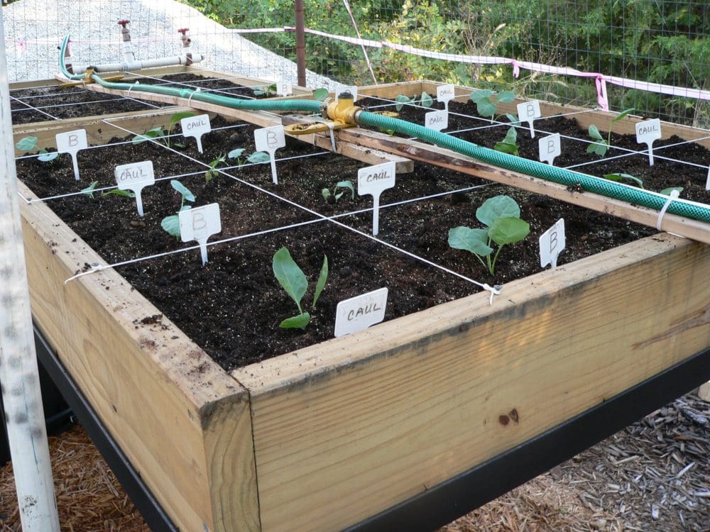 We started out with a square foot garden on the ground. We live on top of a ridge line and had to truck in the soil to make a small space around the house for a ‘yard’ when we built over 30 years ago. The square foot garden allows you to build a garden plot on top of your existing soil using Mel’s Mix to bypass any soil problems. (Mel’s Mix is a combination of peat moss, vermiculite, and as many different kinds of compost as you can find. We use mushroom, barnyard, cotton burr, and some made by us.)