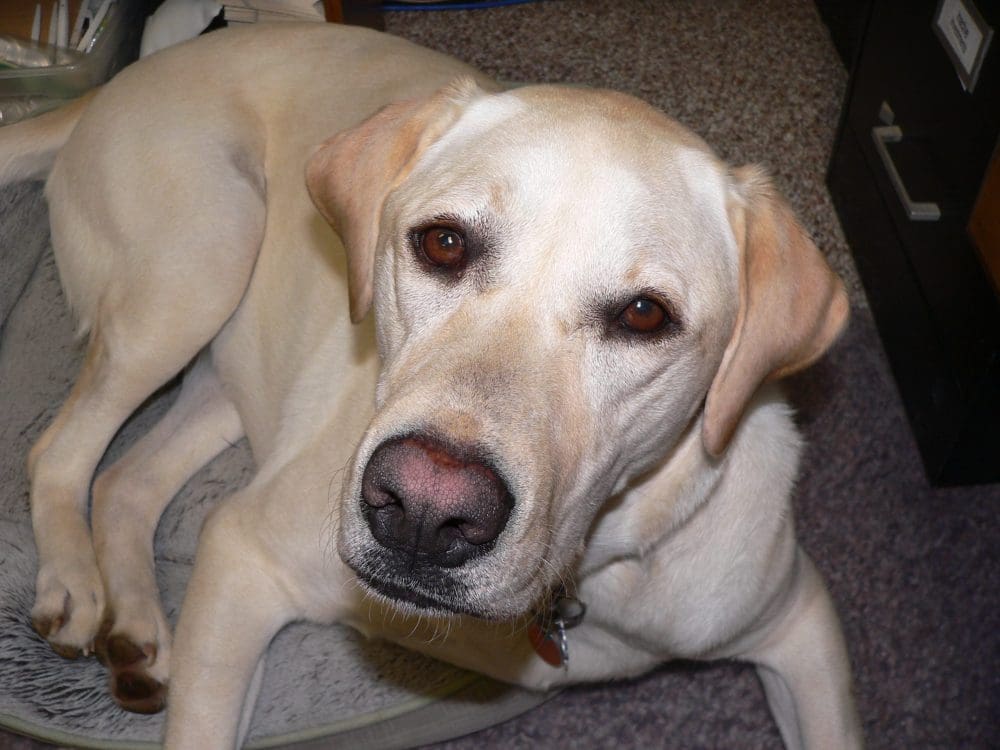 Our yellow lab, Amber, will be 2 years old in March. She weighs 94 pounds, and we’re still deciding who is training whom.