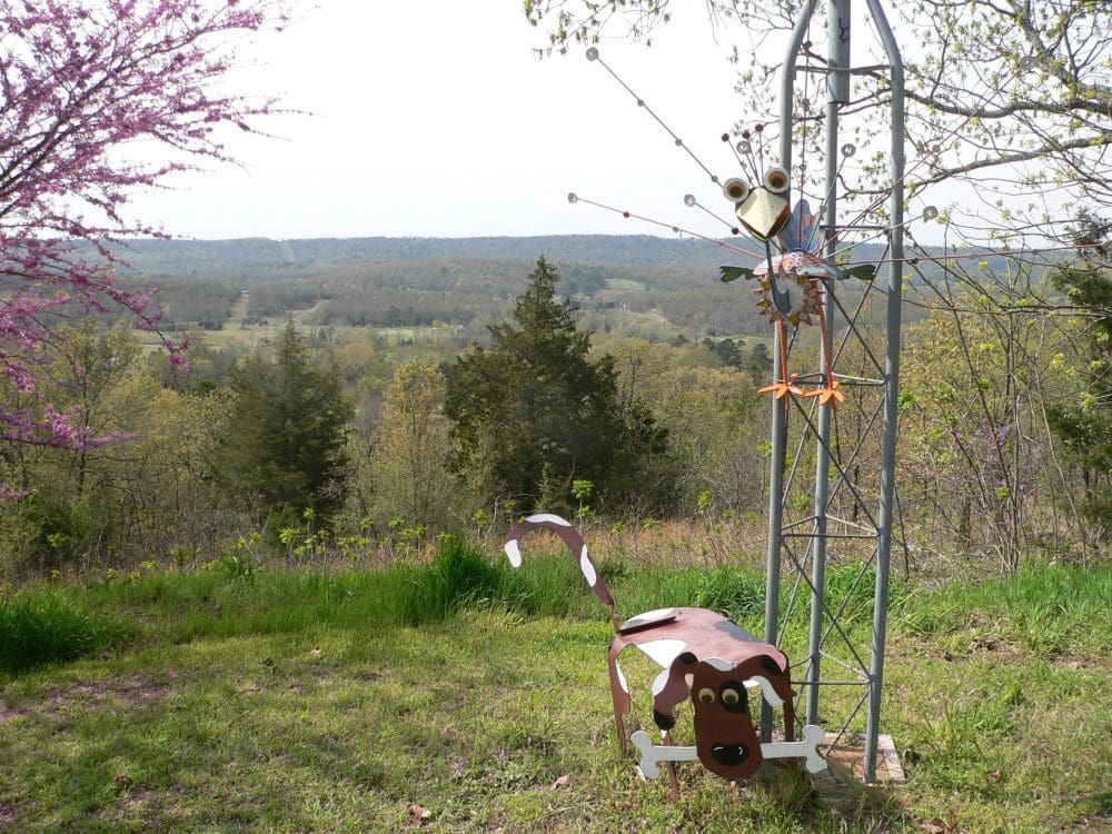Here you can also see the dog we made, plus the “peacock” hanging onto the leftover ham radio antenna section we mounted on some concrete.