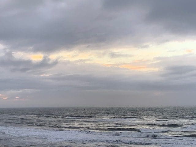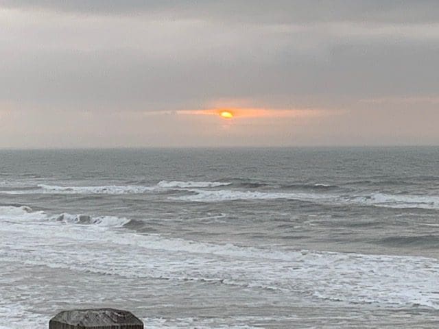 It’s been a wonderful feast for the eyes. Thanks to her, we’ve enjoyed a couple of stunning sunrises, lots of waves, one small glimpse of a sandpiper (they weren’t feeling cooperative this trip), a treasure trove of ‘goodies,’ and lots of relaxation.