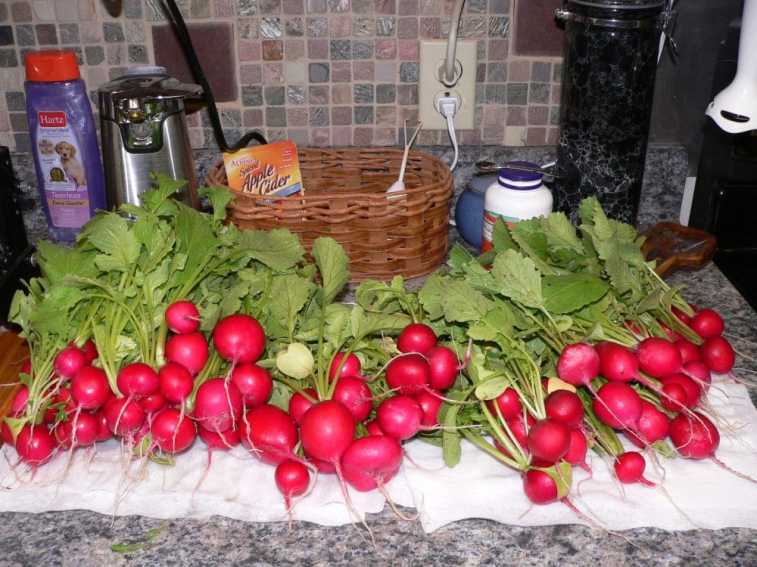 Yesterday I harvested a bunch of radishes, two heads of lettuce, and some broccoli. Today I harvested MORE radishes