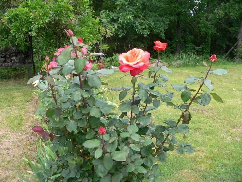 This is the red rose bush and you can also see one of the Rio Samba bushes further back in the trio of planters.