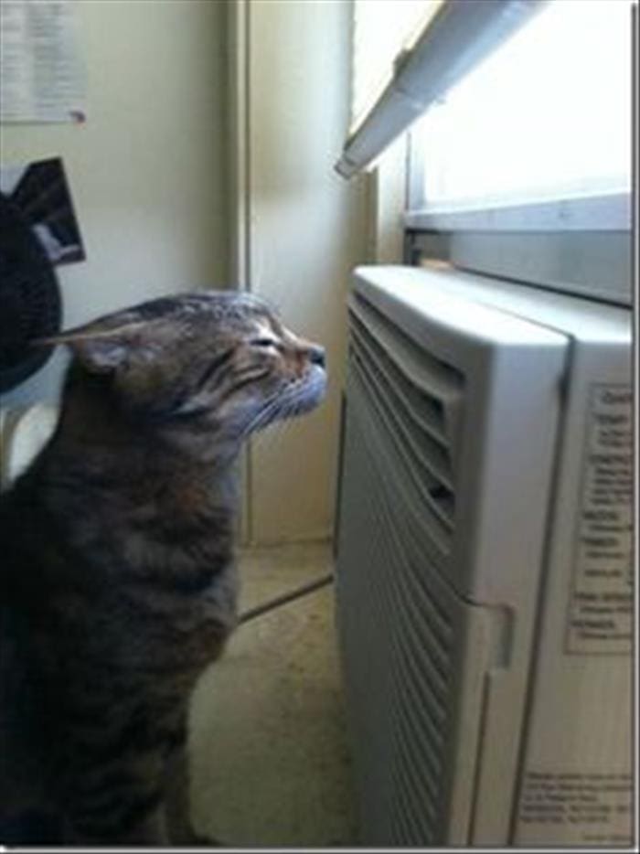 We don’t actually have window units in our house, but I couldn’t resist the picture of this kitty trying to cool off.
