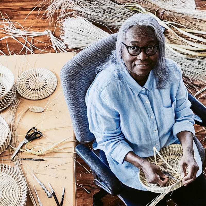 “Mary Jackson is an African American fiber artist. She is best known for her sweetgrass basket weaving using traditional methods combined with her innovative, contemporary designs.” Wikipedia