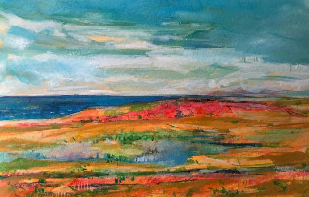 I did the first step in creating another plaque painted with Unicorn Spit. None of the steps takes long. I wait for what I do to dry, and then go up again and do the next step, over and over, until the piece is finished. Wonderful fun.