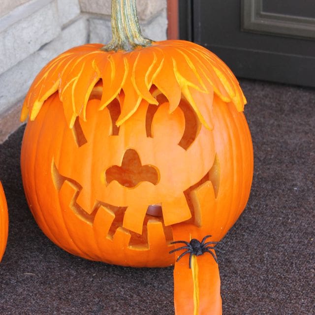 Today when we were shopping for groceries, we saw families with big pumpkins in their shopping carts. Since we live on top of a ridgeline 650+feet up a steep driveway, we don’t get trick or treaters anymore. I love to see the delight on the children’s faces. I wish I could say we made wonderful jack-o-lanterns when our son was young and we were BURIED in so many trick or treaters we had to BUDGET to be able to pay for all the candy. Alas, I was lucky to manage the traditional jack-o-lantern without cutting off a finger or two. That’s why I truly love searching the net each year to see what the creative people are coming up with. I’m amazed at all the wonderful ideas and the amazing talent I find!