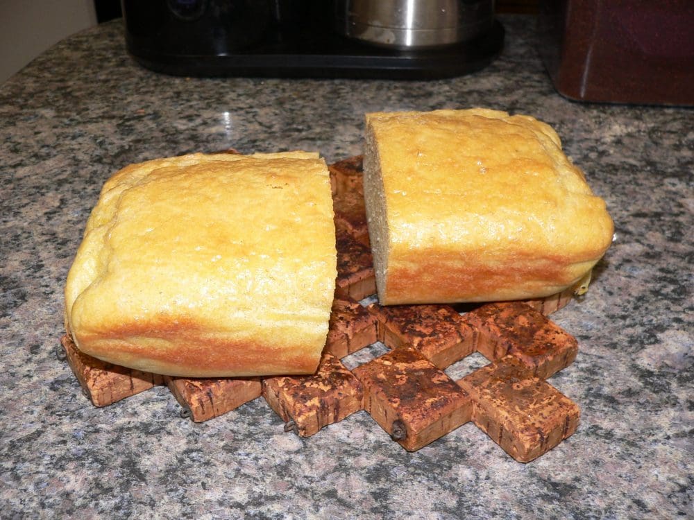 The loaf above was my first try. This was a recipe for the oven. I sliced two thin slices for my husband and I to try. My husband was not impressed. I thought it was okay. I went into the kitchen to wrap up the rest of the loaf, only to find it GONE. Amber, our 94-pound 2-1/2 year old yellow lab, had eaten the entire thing! (She gave it 2 thumbs up.)
