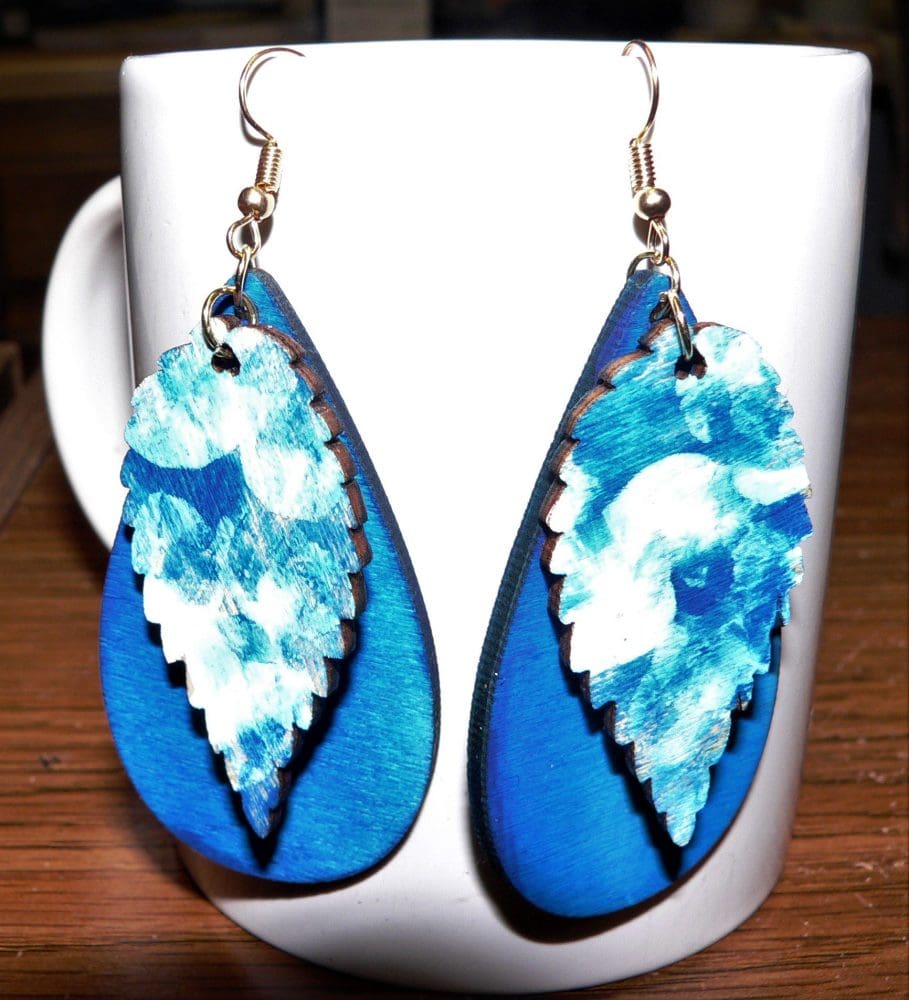 Tagged as feedback requested, new layered hand painted wooden earring designs, playing in my art room