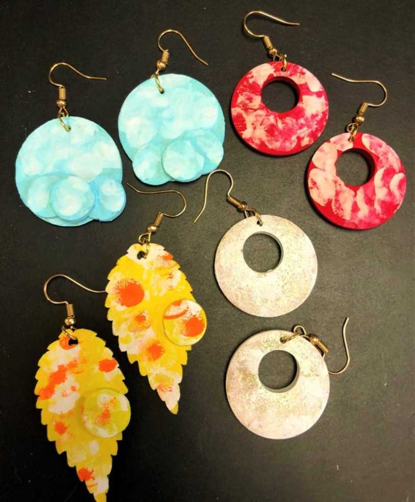 I had fun making these. Some are made with metallic paint to simulate silver or copper. Others are layered or hung together in a new way.