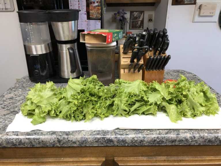 I processed and washed 9 gallon plastic bags of lettuce leaves today. I am rich in lettuce! Guess who will be eating LOTS of salads starting at lunch today…