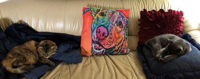 These are our cats, Abby on the left of the picture and Smoke on the right. They were obviously in accord about how to spend the day today.