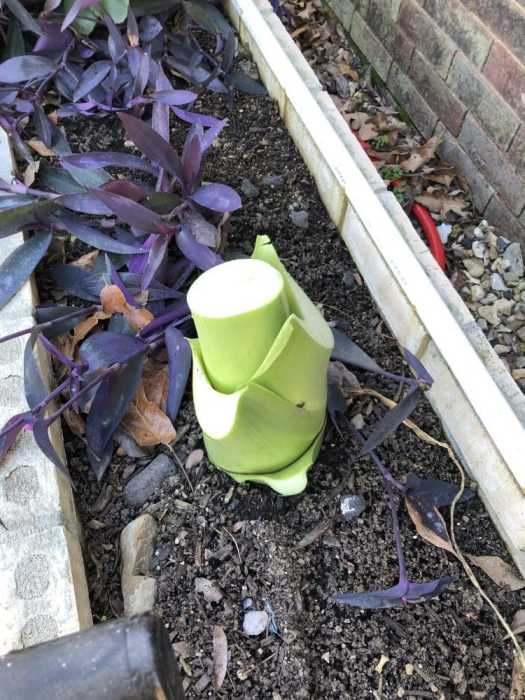 This is what they looked like yesterday.Today, after the freezeSome of the stalks were taller than I am. I had to dig about 6 inches or so down to get to the roots so I could pull out the bulbI dug out both bulbs, plus a bunch of the roots of the purple-leafed stuff. (I have no idea what it is, but I like it. )This is basically what the planter looks like now. I need to neaten things up a bit, but the work was harder than I thought it would be and this old lady needs to warm up and rest. :0)