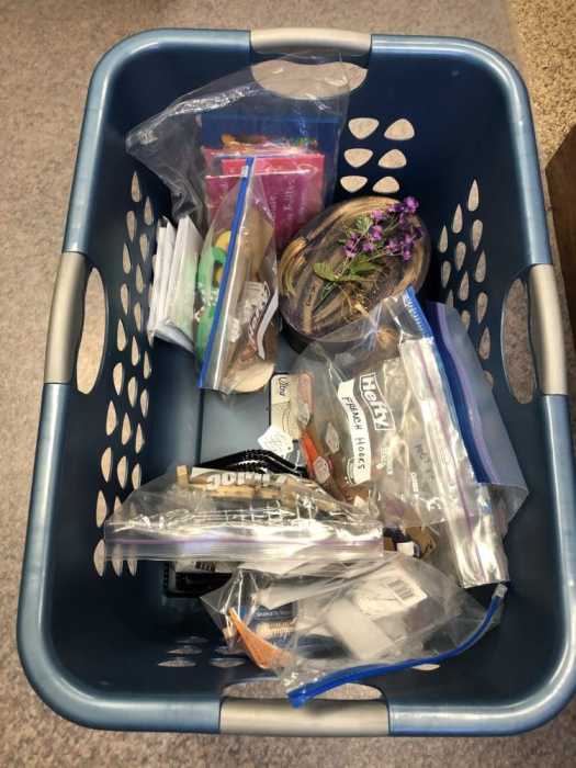 THING TWO: I finally went through the big laundry basket I use to haul things back and forth to the booth my friend Carla and I share at Rags & Roses Collective in Greenwood. It was an absolute mess, full of packing materials, display supplies I can never quite put my hands on when I’m trying to put new things in the booth, products I had brought home, products that needed to be put in the booth when there is room, etc.