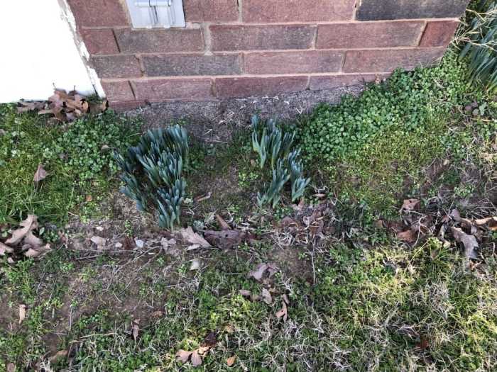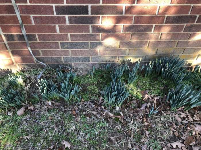 I dug up our daffodils several years ago, transplanting them around the yard. I dug deep and thought I had gotten all the bulbs out, since it’s kind of a pain to deal with them around the well house. Some came up anyway, despite my efforts, determined to put on a show.