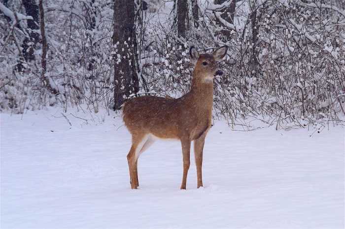 Thanks for writing, Maria. I WISH I could take credit for the photo, but it’s not mine. Our deer looked like that one, but we mainly saw the head and top half of the body as it ate something in the snow. The photo I found was the closest I could find to what we saw.