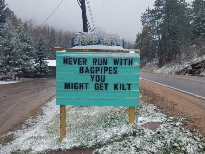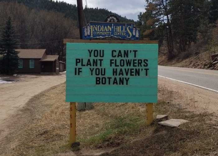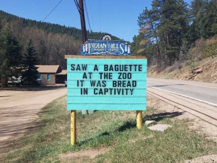 Tagged as funny signs, humor, Indian Hills Colorado Puns, punny